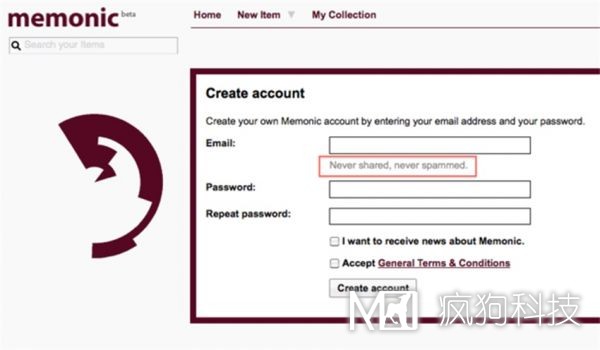 Memonic 是一款筆記應用,它在郵箱注冊輸入框的位置標記了一句「不推送,不打擾」,來(lái)向用戶(hù)保證郵箱注冊的安全性,讓用戶(hù)放心注冊。這樣的方式能夠很大的提升用戶(hù)注冊的轉化率,因為這是在支持用戶(hù)的操作行為,讓用戶(hù)不會(huì )被眼前的任務(wù)所困惑。